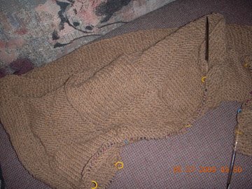 Enter yours truly. We went to S.A. for a visit, and she said she had some yarn for me. She was giving up on the afghan, and asked if I wanted the yarn. Cool; sure. I went to pick it up and her husband (my brother-in-law-in-law) said, “You’re just giving her the yarn? I thought you were going to get her to knit it for us.” Ah-ha. I might have said no, but at that point Holly was starting the testing in preparation for a lung transplant. Seriously, how can you deny someone facing a lung transplant their own fuzzy warm afghan?