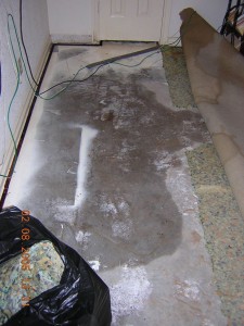 Fortunately, this time I heard the water running and saw the leak before it spread. It was too late to do anything about it before the cousins got here, but after they left and it dried out, I caulked the heck out of it. As you can see above, I’ve had all I need of ripping out moldy carpet and soggy padding.