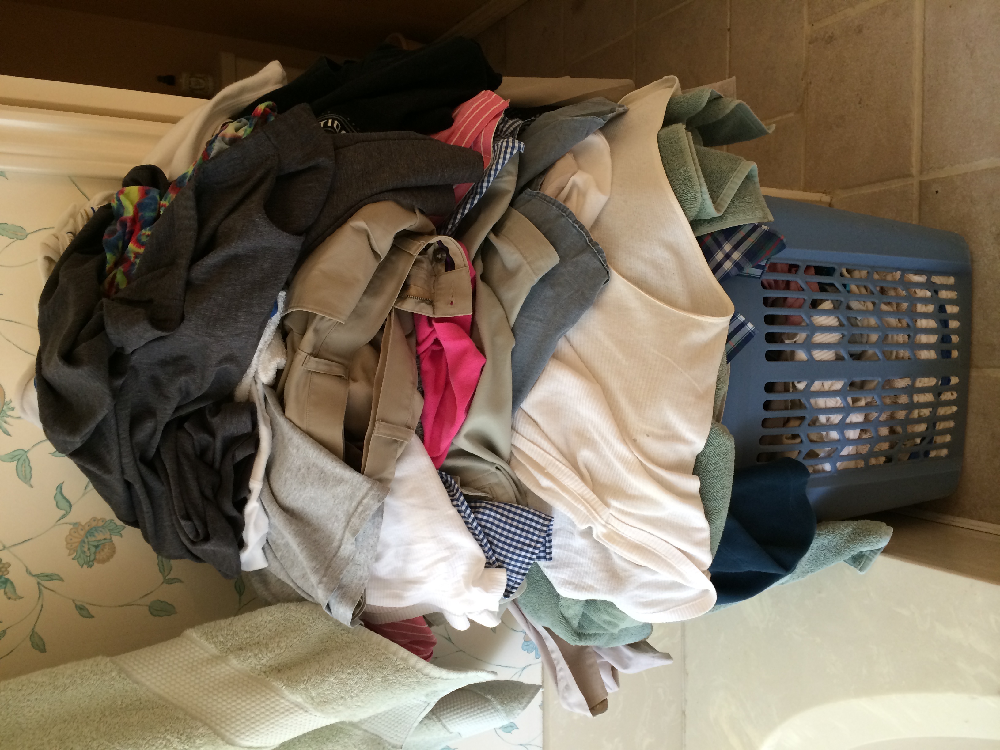 Generic picture of a heaping dirty clothes hamper from somewhere. It’s certainly NOT a picture from my bathroom!