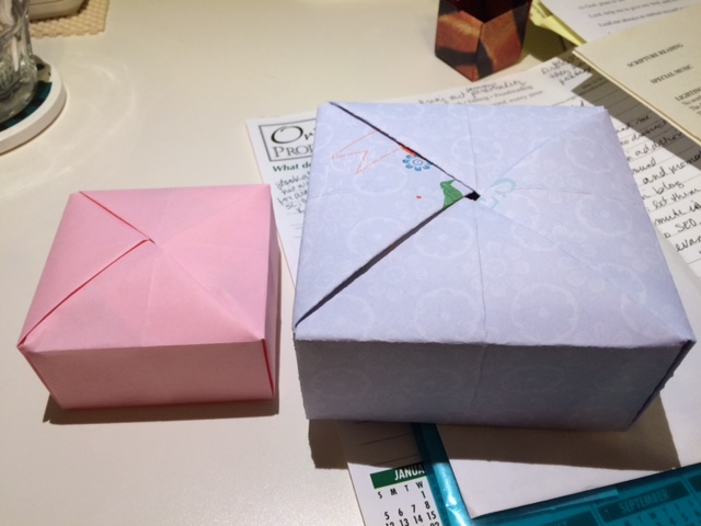 I’ve made a bunch of gift boxes, and went and bought a big “mega pack” of origami paper this afternoon. (400+ sheets for $3.86. Don’t you judge me!) I’ve been folding bows and flowers and stuff since I got home.