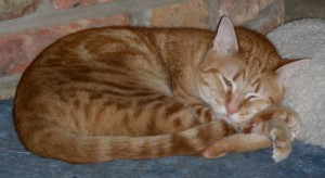 It’s not all that great for me, though, because Rich is naturally an early riser, which fits in well with our cats’ schedule. When he’s gone, Rocky spends half an hour every morning convincing me it’s time to get up—by biting my hands if he can get to them, or walking all over me if he can’t. They, cats and dogs, gradually start sleeping later as the days pass, but it takes a while. In the meantime, I get up way before I want to, stumble around feeding everybody, then collapse back into bed, hoping I can go back to sleep (I can’t). I’ll be glad when Rich is back to reclaim the breakfast shift.