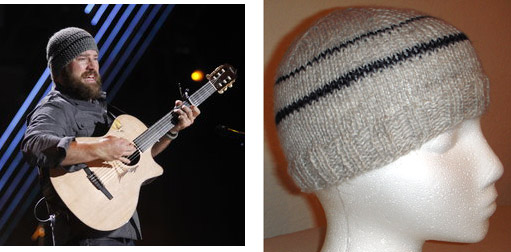 Okay, then. How about a picture of what I’ve been knitting? I just made this, really, really quickly. My beloved niece has a godson, 16 years old, who is being treated for testicular cancer. (Yeah, that is in the vicinity of the worst thing I’ve ever heard.) He’s losing his hair from the chemo and she contacted me to see if I would knit him a hat. He wanted a beanie, skullcap kind of thing, “like the Zac Brown Band wears.” How’d I do?